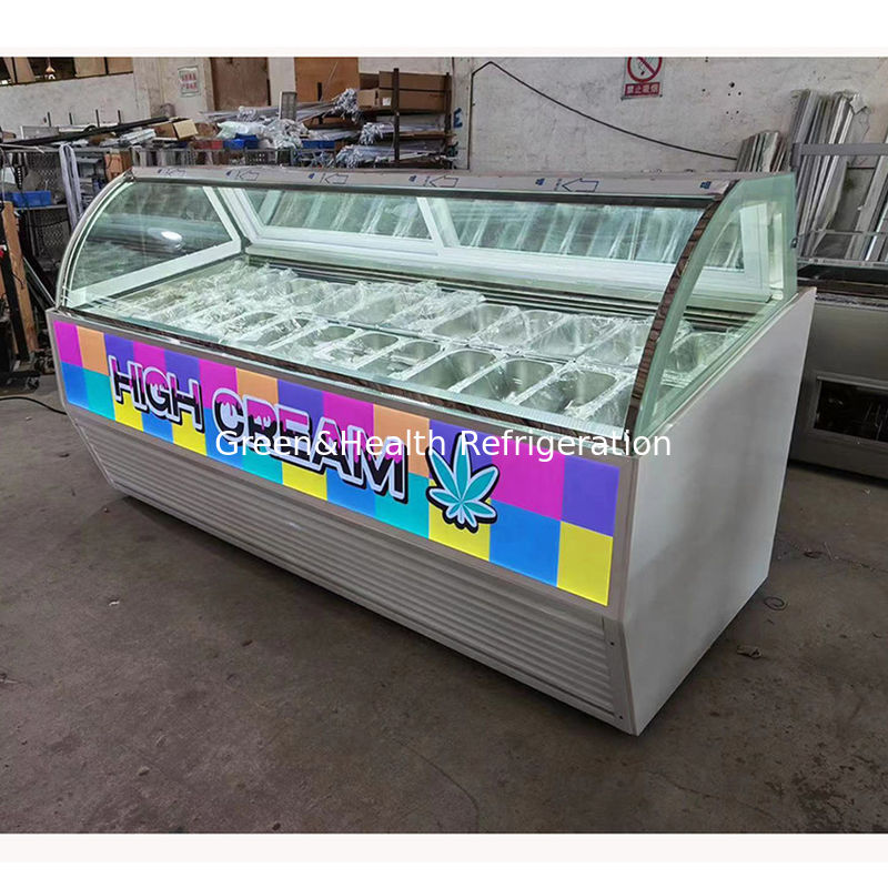 فروشگاه بستنی اسکوپ بستنی نمایشگر فریزر بستنی فریزر با شیشه خمیده